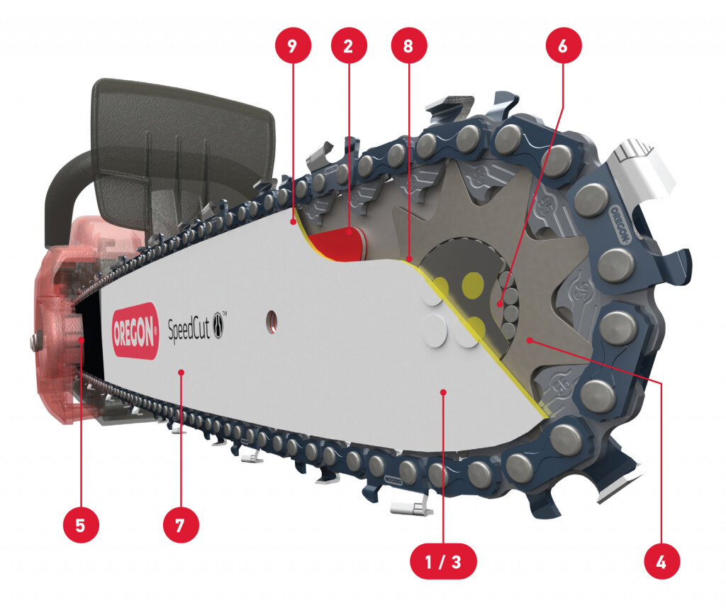 2. На 20% снижен вес по сравнению с шинами OREGON® Pro-Lite за счёт использования нового сплава алюминия, что улучшает баланс на малых пилах и позволяет дольше работать ими, не уставая;