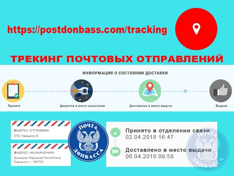 Алгоритм трекинга несложный: на главной странице официального сайта ГП «Почта Донбасса», кликнув на ярко-красную кнопку, зайти в соответствующий раздел, ввести трек-номер и узнать состояние почтового отправления на данный момент. "Пока трекинг позволяет отслеживать путь передвижения отправлений по территории Донецкой Народной Республики, но в ближайшей перспективе география будет расширяться", - сообщил генеральный директор ГП "Почта Донбасса" Денис Неудачин. Источник: https://postdonbass.com/news/pochta-donbassa-vvela-novuyu-uslugu-otslezhivanie-pochtovyh-otpravleniy