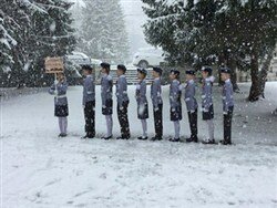 Уральских школьниц из юнармейского отряда «Рысь», которым пришлось маршировать по снегу в юбках и балетках, растерли спиртом и угостили витаминами после выступления, сообщила Ura.ru заместитель директора школы по воспитательной работе Надежда Владимирова в субботу, 28 апреля. «Да, этот момент был неприятный, и, конечно же, мы боялись за их здоровье», — отметила она. Ответственность за выступление в непогоду Владимирова переложила на самих детей. По результатам смотра отряд получил Гран-при Всероссийского патриотического фестиваля «Сыны и дочери Отечества» и теперь поедет на смотр-парад «Марш победителей» в Москву. Инцидент произошел 24 апреля в Екатеринбурге на площади перед Домом офицеров. Провести его в помещении не смогли из-за аварийного состояния одного из залов. Участвовавшие в смотре отряды были возмущены, но организаторы ответили им: «Идите отсюда, мы вас не держим». После марша по снегу, по данным издания, несколько школьниц простудились и слегли с температурой. Ранее предста