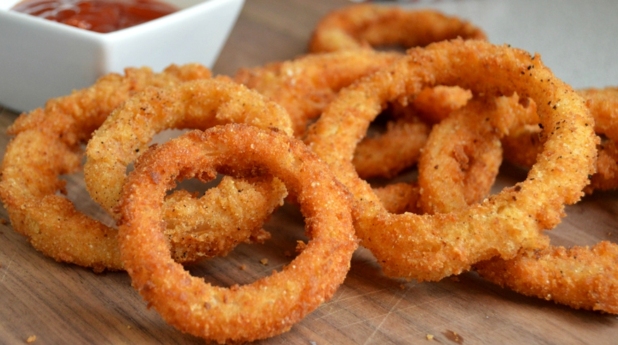 Предлагаем Вашему вниманию нестандартный рецепт луковых колец. Обычно кольца жарят в кляре, но мы предлагаем запекать их. Попробуйте, это очень вкусно!
