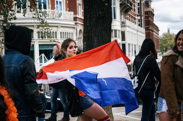 День Короля в Амстердаме мне запомнился по двум причинам: во-первых – всё кругом оранжевое и в пиве, во-вторых – никому нет дела до огромного забытого рюкзака с фототехникой и личными вещами посреди площади. И то и другое я воспринимаю с огромным позитивом! – Ты посмотри! Они веселые, дружелюбные и «наваленные»! Совсем не так, как в Барселоне. Там было жутковато, – подметила Н.