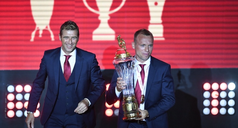 Сюжет: 27-й тур чемпионата России-2017/18 по футболу, 21-23 апреля Московский “Спартак” передал кубок чемпиона России в Российскую футбольную премьер-лигу, сообщили РИА Новости в пресс-службе РФПЛ. “Спартак” стал чемпионом России по итогам сезона-2016/17. В нынешнем сезоне после 27 игр лидирует столичный “Локомотив”, набравший 57 очков. “Спартак” имеет игру в запасе и отстает от железнодорожников на 7 очков. Свой матч 27-го тура “красно-белые” проведут в понедельник в Москве против грозненского “Ахмата”. “Спартак” передал переходящий кубок чемпиона России в офис РФПЛ на прошлой неделе”, – сообщили РИА Новости в пресс-службе РФПЛ.