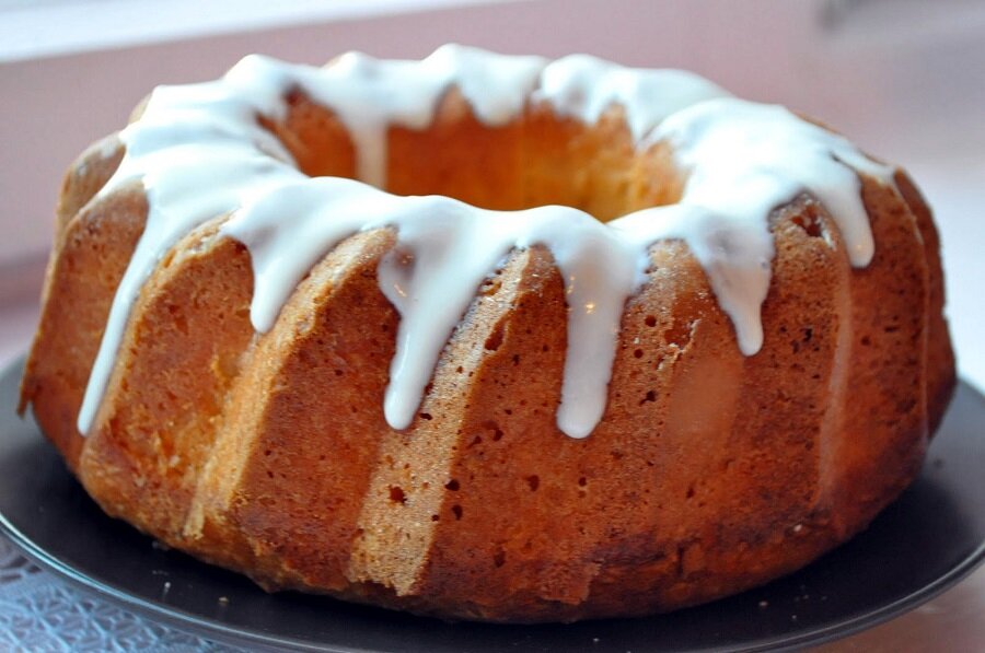 Аппетитный кекс готов! Его можно подавать с вкуснейшим карамельным соусом. Рецепт его приготовления можно найти у нас на сайте.