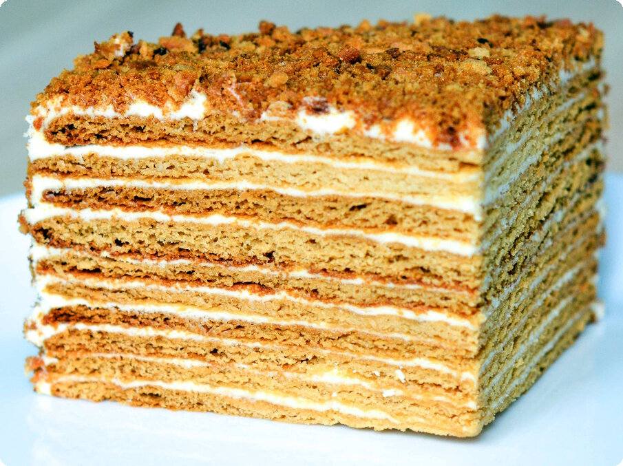 Форму (25х35) застилаем пергаментом, раскатываем тесто по размеру формы, выпекаем в разогретой до 180 минут духовке около 10 минут. Аналогично выпекаем и второй корж. Третий корж перед выпечкой посыпаем приготовленной ореховой массой. Ореховая масса. Масло топим в кастрюльке вместе с медом, добавляем сахар и орехи, прогреваем еще 1-2 минуты. Охлаждаем, выкладываем на тесто. Крем. Молоко доводим до кипения, засыпаем манку, варим на медленном огне, постоянно помешивая, 3-4 минуты. Охлаждаем. Мягкое масло взбиваем с сахаром и ванильным сахаром до пышной светлой массы. Добавляем по ложке холодную манку, взбиваем до однородности. Собираем корж. Крем выкладываем на нижний корж, накрываем его вторым к