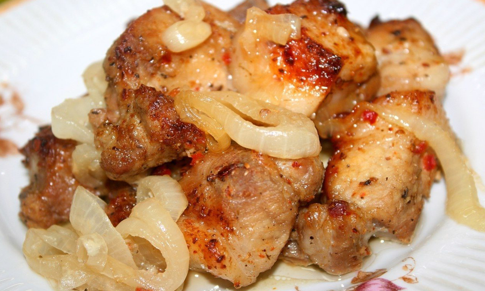 ИНГРЕДИЕНТЫ: мясо ( свинина ) — 1 кг лук репчатый — 2-4 шт. уксус — 3 ст. л. ( 2 для маринования лука, 1 для мяса ) смесь перцев — 0,5 ч. л. сок лимона — 3 ст. л. сахар — 1 ст. л. приправа для мяса — 2 ст. л. рукав для запекания Способ приготовления: 1) Нарезать мясо небольшими кусочками. Добавить смесь перцев, приправу, 1 столовую ложку уксуса и лимонный сок. Тщательно все перемешать и оставить мариноваться от 2 до 6 часов в холоде. 2) Нарезать кольцами лук. Добавить 2 столовые ложки уксуса, 1 столовую ложку сахара и 4 столовых ложки воды. Оставить мариноваться на 1 час. 3) Приготовить рукав для запекания. Завязать с одной стороны. Выложить на дно маринованный лук. Сверху выложить мясо. 4) Завязать рукав с другой стороны и сделать 2-3 прокола вверху пакета. Поставить в разогретую духовку до t 250° С на 50 минут. Через 50 минут достать лист и разрезать рукав для поджаривания мяса. При необходимости, можно полить выделившимся соком. И снова поставить в духовку на 30 минут. 5) Шашлык
