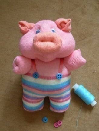 В этой статье я расскажу, как сделать мягкую игрушку из колготок, которая станет лучшим другом для ваших деток. Пошаговые фотографии и подробное описание вам в этом помогут. При изготовлении игрушки из колготок, мастер класс начнется с подготовки всего необходимого для этого, а именно: Итак, как же сделать игрушки из колготок. Начнем с головы. Для этого отрезаем самую широкую часть колгот. Сшиваем с одной стороны. В другую же сторону набиваем ватой и сшиваем. Теперь с помощью булавок, ниток и иголок формируем рожицу поросенка так, как показано на рисунке. Из отрезков колгот другого оттенка формируем ушки и пяточок таким же образом, как и рожицу. Теперь перейдем к туловищу и ножкам. Обрезаем соответствующую часть колгот, сшиваем низ, сверху же набиваем плотно ватой и дошиваем до конца. Таким же образом формируем ручки игрушки. Теперь к туловищу пришиваем все части тела поросенка. Остается только декорировать нашего забавного хрюшку: пришиваем глазки (если их нет, то можно вшить просто