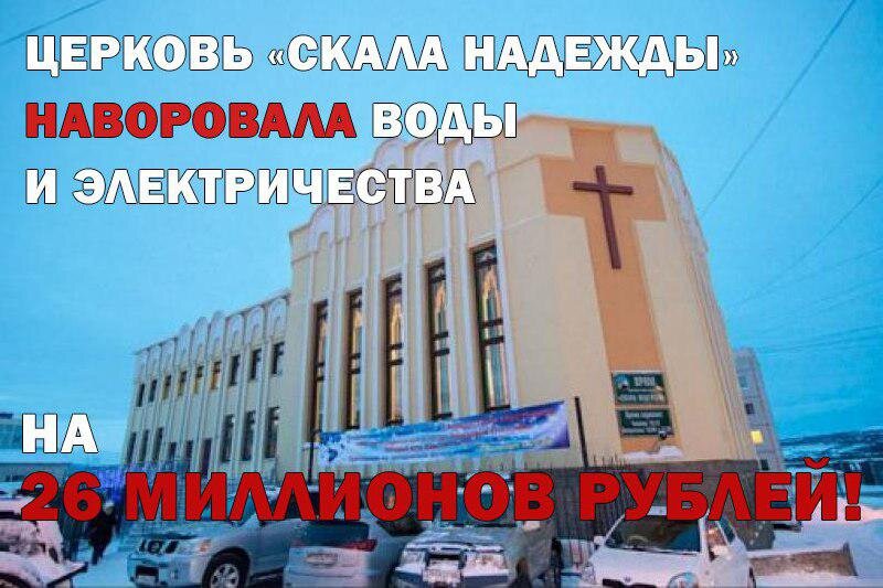 Чудны дела твои Господи! Воздаёшь ты по заслугам каждому, даже служителям культа! Но если без патетики и нотаций, то в Магадане произошло уникальное событие. Наказана религиозная организация, которая более 20 лет (!) воровала воду! Проштрафилась перед богом и местным водоканалом местная церковь «Скала Надежды». Незаконную врезку холодной воды нашли в одном из главных зданий «христиан веры евангельской». ‼️Все эти годы за воришек платили жители близлежащих домов! Но самое удивительное, что магаданские евангелисты ещё и настоящие рецидивисты! Ранее им пришлось заплатить более 800 с лишним тысяч рублей за воровство электричества! 🔻Из каких средств баптисты оплатят многомиллионный штраф — вопрос. Вряд ли пожертвований хватит! В любом случае жаль, что денежки наверняка попадут в карманы водоканальщиков, а не потребителей, которые все эти годы платили за воров!
