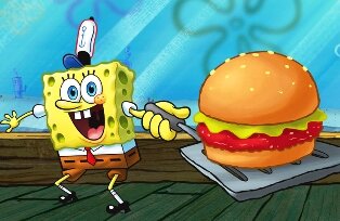 Бабуля, хочу бургер, ныл Максимка. Ирина Викторовна посмотрела на внука подумала и предложила. -А хочешь сам приготовить? -Что приготовить? Как? - заинтересовался внук -Крабсбургеры, помнишь как в мультике про Спанч Боба. -Но он же никому рецепт не говорит? -А мне сказал! Вот у меня где-то здесь есть, - достала бабушка Макса клочок бумаги, а на нём старые Максимкины каракули. -Тут не понятно ничего? -Так зашифровано, я то умею прочитать! Ну что? Готовим? -ДА! - радостно закричал внук. Они зашли в магазин и купили: ◘ Булочку с кунжутом (по количеству человек) ◘ Крупный упругий помидор ◘ 2 Крупных лука ◘ Твёрдый сыр (можно уже нарезанный) ◘ Маринованные огурцы - 1б. ◘ Говядина и свинина - по 200г. ◘ Яйцо - 1шт. ◘ Кетчуп и Горчица - по вкусу ◘ Масло рафинированное –100мл ◘ Листочки салата - 3 шт. ◘ Соль морская и черный перчик – добавлять в котлеты по усмотрению. Наконец, они были дома. Ирина Викторовна достала мясорубку, а Максу дала чистить лук. -Чтобы сделать котлеты, необхо