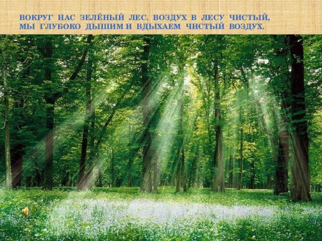 - При вдыхании такого воздуха повышается содержание кислорода в крови, очень сильно понижается уровень сахара и фосфора, снимается головная боль и усталость, улучшается самочувствие и настроение. Лесной воздух отличается от любого другого повышенной ионизацией (подсчитали, что в кубическом сантиметре лесного воздуха содержится до 3-х тысяч легких ионов). Ионизирующими факторами являются смолистые, ароматические вещества, выделяемые растениями в период вегетации. Все они создают определенную биохимическую среду и обусловливают определенный состав приземного слоя воздуха. Все растительные организмы (от бактерий до цветковых растений) выделяют в окружающую среду газообразные, жидкие, твердые, летучие, нелетучие, прижизненные, посмертные выделения из поврежденных и неповрежденных органов. Эти выделения являются важным экологическим и фитоценотическим фактором. Те из них, которые губительно действуют на различные болезнетворные микроорганизмы, называются фитонцидами. Особенно много фитонцидов выделяют дуб, можжевельник, сосна, ель, черемуха, мох, грецкий орех. В летний жаркий день один гектар дубового леса (дубрава) выделяет фитонцидов до 15 кг, сосновый лес — вдвое больше. Количество фитонцидов, выделяемого таким же по площади можжевеловым лесом, достаточно для уничтожения всех микроорганизмов в воздухе большого города.
