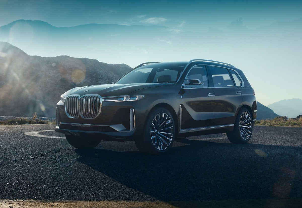 В основе нового БМВ Х7 2019 лежит модульная платформа CLAR с двухрычажной подвеской спереди и многорычажной сзади (опционально - пневмоподвеской на все колеса). Презентация нового авто BMW X7 состоится в ноябре 2018 года на автосалоне в Лос-Анджелесе, продажи стартуют через несколько месяцев, а в России этот полноразмерный кроссовер появится только в 2019 году. Что можно сказать о новом флагманском кроссовере. Производство новой модели будет осуществляться на предприятии в американском Спартанберге. ВНЕШНИЙ ВИД BMW X7 2019 Прототип внедорожника БМВ Х7 выглядит мощно, спортивно и агрессивно. Cпереди обращают на себя внимание огромные, практически круглые ноздри в фальшрадиаторной решетке, массивный передний бампер с величественными воздухозаборниками, разместившимся по бокам, сильно зауженные полностью светодиодные фары головного света. С боковых сторон можно отметить ровную линию подоконников и довольно массивные двери с ярко – выраженным ребром. Обращают внимание маленькие зерка