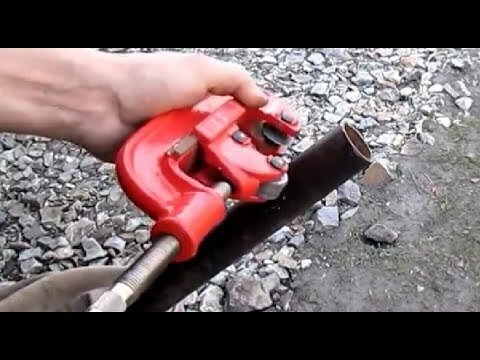 Работа с труборезом. Удобный инструмент в плане аккуратной и ровной резки трубы.