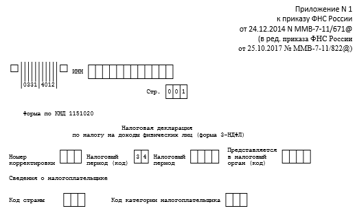 Последний бланк декларации утвержден приказом ФНС России от 25.10.2017 № ММВ-7-11/822@.