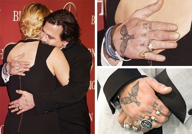 Несколько лет назад, когда Депп сошелся с другой своей партнершей, актрисой Эмбер Хёрд, он набил на костяшках пальцев правой руки прозвище своей новой возлюбленной – «SLIM», что означает «худышка» или «стройняшка». Но, после начала скандального и резонансного развода с блондинкой, Джонни также внес коррективы в эту надпись, и исправил её на «SCUM», что можно перевести, как «дрянь». Довольно жестко, но большинство поклонников безоговорочно поддержали своего кумира.