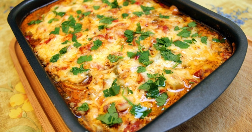 Популярные рецепты приготовления куриного филе, как правило, имеют несколько вариантов. Однако курица «Пикассо» готовится с использованием одних и тех же ингредиентов. Можно сказать, что это блюдо сохранилось в первозданном виде. Несложно понять, почему его назвали в честь знаменитого художника и скульптора, блюдо получается красочным и создает пеструю абстрактную картину. Да, это не просто запеченная куриная грудка, а произведение искусства! Ингредиенты Приготовление 1. Натрите сыр, нарежьте лук и болгарский перец кольцами, раздавите или мелко нарежьте чеснок, а помидоры очистите от шкурки и измельчите.2. Разогрейте сковороду со сливочным и оливковым маслом. Поперчите и посолите куриные грудки, обжарьте их с двух сторон и выложите на противень.3. В той же сковороде обжарьте лук до золотистого цвета и выложите его поверх филе.4. Затем обжарьте болгарский перец до мягкости и положите поверх лука.5. Готовим соус. Обжарьте чеснок, добавьте воду. Держите на огне две минуты. Зате
