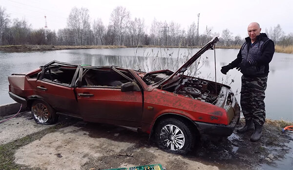 Ведущий канала «Гараж 54» Владислав Барашенков доказал, что отечественным автомобилям длительное нахождение в воде не помеха. Видеоблогер завел «Жигули», полгода пролежавшие на дне водоема. В начале Барашенков достал покореженный корпус «Жигулей» из водоема при помощи крана. Из-за давления льда корпус машины оказался смят, однако это не стало препятствием к тому, чтобы открыть капот, провести нехитрые манипуляции и в конце концов завести автомобиль. Ведущий выгнал воду из мотора, продул систему зажигания и заменил свечи. В итоге автомобиль, пролежавший в водоеме полгода, завелся. Как пояснил Барашенков, смысл эксперимента заключается не в том, чтобы отремонтировать пролежавший в воде автомобиль,. а в том, чтобы показать, что в любом случае мотор остается «живым» и после некоторых действий может завестись. «Не ругайте «Жигули», это реально крутая тачка!», — сказал ведущий. Фото и видео: «Гараж 54»