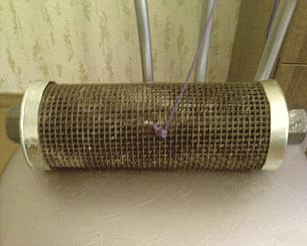 Сетку нужно согнуть по внутреннему диаметру банок и затем сваркой соединить шов на сетке. Длину сетки делаем 260 мм. Баночки нужно обрезать и одеть на сетку как крышки. Еще делаем в них отверстия под шпильку. Пропускаем шпильку через отверстия, ставим шайбы и затягиваем гайки. В кормушку для веса я кладу токарный резец, он имеет небольшой размер и подходящий вес. В середине сетки привязываем шнур, он нужен для скольжения по нему кольца. Все, кормушка под кольцо готова.