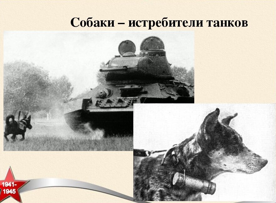 Противотанковая собака — специально дрессированная собака с укреплённым на ней зарядом взрывчатого вещества. Собака забиралась под танк, срабатывал датчик цели (деревянный штырь длиной около 20 см) и заряд взрывался непосредственно под днищем танка. Собаки применялись Красной армией во время Великой Отечественной войны против танков вермахта. Решение о применении собак в военных целях было принято Реввоенсоветом СССР в 1924 году. В 1930 г. слушатель курсов военного собаководства Шошин предложил использовать собак против танков, а командир взвода 7-го полка связи Нитц дал предложению техническое обоснование. В 1931—1932 гг. в Ульяновской окружной школе служебного собаководства были проведены первые испытания. Позже испытания были продолжены в Саратовской бронетанковой школе и лагерях 57-й армии в Забайкалье, в 1935 г. — на Научно-исследовательском автобронетанковом полигоне в Кубинке. Собаки-истребители танков (официальное советское название) были приняты на вооружение в 1935 год