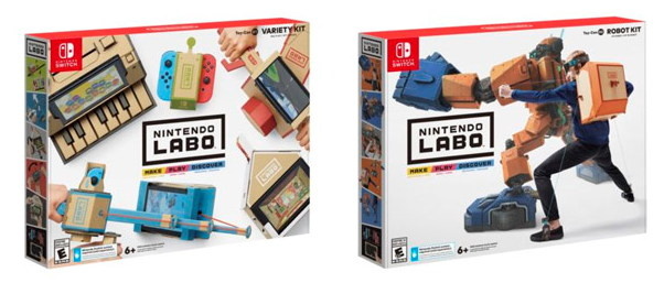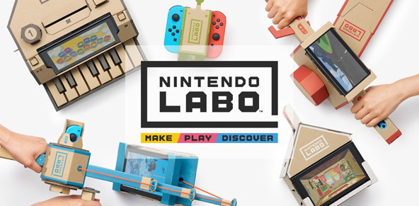 Инновационные картонные наборы аксессуаров Nintendo для Nintendo Switch, запущенные в продажу весной 2018 года, подарят вам совершенно новый опыт игры на приставке. Набор Variety Kit предлагается по цене $70, а Robot Kit — $80. Долгожданные наборы Nintendo Labo поступили в продажу за рубежом 20 апреля 2018 года. Labo вводит новаторские возможности геймплея в игры для консолей. Nintendo Switch необходим для того, чтобы наслаждаться опытом Labo; без приставки играть не получится. По словам президента Nintendo Тацуми Кимишима: "Nintendo Labo расширяет возможности Nintendo Switch."