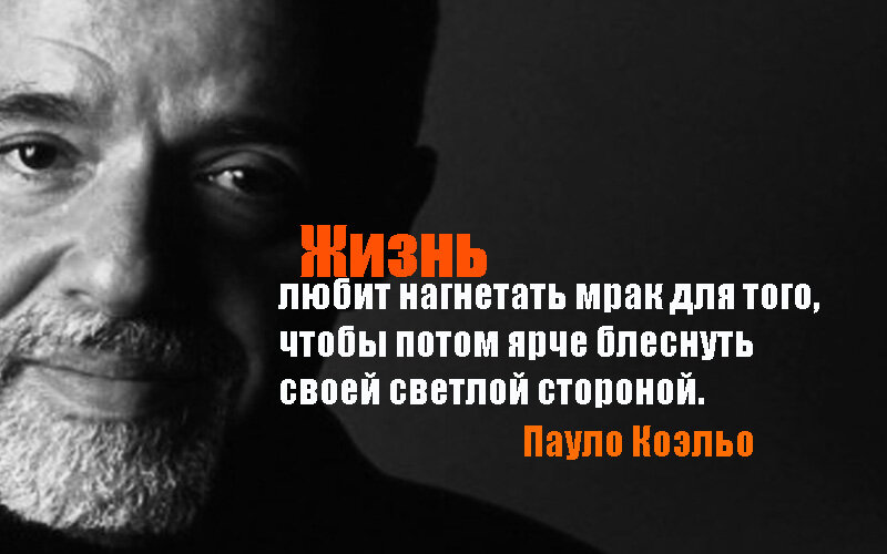 1. Если человек действительно чего-то захочет, то вся Вселенная будет способствовать тому, чтобы его желание сбылось. 2. Я в точности такая же, как и все; принимаю желаемое за действительное и вижу мир не таким, каков он на самом деле, а таким, каким мне хочется его видеть. 3. Если тебя выписали из сумасшедшего дома, это еще не значит, что тебя вылечили. Просто ты стал как все. 4. Если осмелишься сказать «прощай», жизнь наградит тебя новым «здравствуй». 5. Жизнь — это всегда ожидание того часа, когда дальнейшее зависит лишь от твоих решительных действий. 6. Чтобы жить полной жизнью, надо находиться в постоянном движении, и только тогда один день будет непохож на другой. 7. Я — не тело, наделенное душой, я — душа, часть которой видима и называется телом. 8. Жизнь можно начать с чистого листа, но почерк изменить трудно. 9. Нужно не только говорить, что думаешь, но и думать, что говоришь. 10. Не тратьте свою жизнь на то, чтобы играть роль, которую для вас выбрали другие. 11. Всегда ес