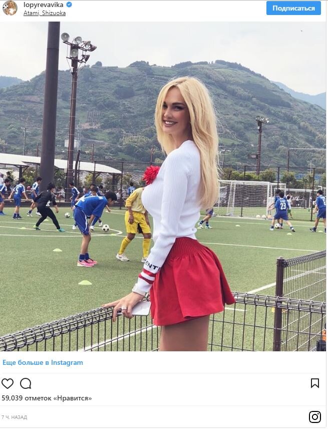 В качестве посла чемпионата мира по футболу 2018 Виктория Лопырева посетила Японию Многие восхитились внешним видом виктории и назвали модель «куколкой». Но нашлись и те, кто посчитал такой наряд неуместным. «Ну и юбка у тебя», «Слишком коротко», «Бабушка в мини-юбке», , — раскритиковали Викторию недовольные поклонники. Но нашлись и те, кто посчитал такой наряд неуместным. «Ну и юбка у тебя», «Слишком коротко», «Бабушка в мини-юбке», , — раскритиковали Викторию недовольные поклонники.