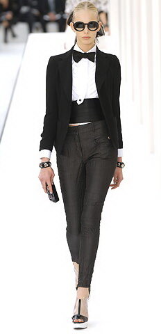 Гарсон - направление, где женщины носят одежду в мужском стиле. Этот стиль в моде и по сей день не утратил своей актуальности. Принты: полоска, клетка. Предметы мужского гардероба обязательны. Одежда не должна показывать все изгибы тела. Смокинг и жакет мужского кроя. Брюки свободного кроя. Рубашка свободного кроя, но допустима и с вытачками. Пиджак. Жилет может повторять цвет костюма или быть контрастным. Часто носят без пиджака, сочетая с галстуком или рубашкой. Пальто прямого силуэта с чёткими линиями. Материалы разные. Элементы: пуговицы, прорезные карманы, отложные воротники, лацканы. Галстуки, подтяжки, ремни. Могут быть яркие. Обувь напоминает мужские ботинки. Обычный вариант – удобные туфли на шнурках. Подошва плоская или небольшой каблук. Иногда туфли на шпильках для вечернего выхода. Общая характеристика. Одежда поддерживает хрупкость женской фигуры. Образ может быть смелым, дерзким или женственным. Популярность стиля гарсон сродни классическому.