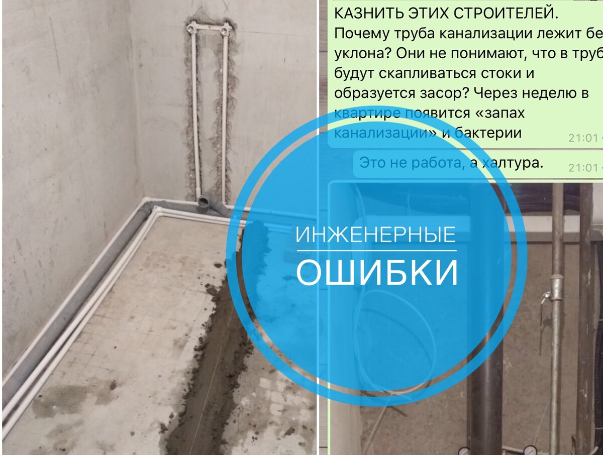 На фотографиях я заметил недостаточный уклон сливной трубы в основном санузле. Игнорирование этого дефекта привело бы к застою воды, появлению неприятных запахов, размножению бактерий и протечкам.