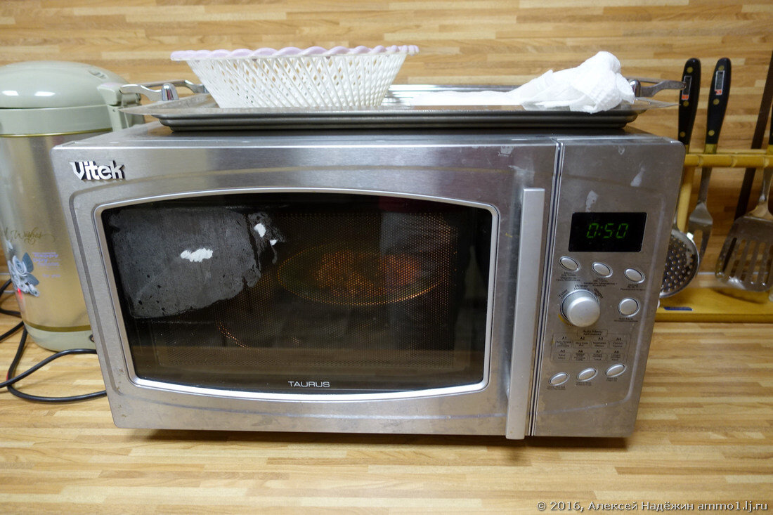 Это произведение российско-китайского бренда называется Vitek Taurus. Я со всем своим опытом целую минуту не мог догадаться, как просто разогреть в ней еду на максимальной мощности.