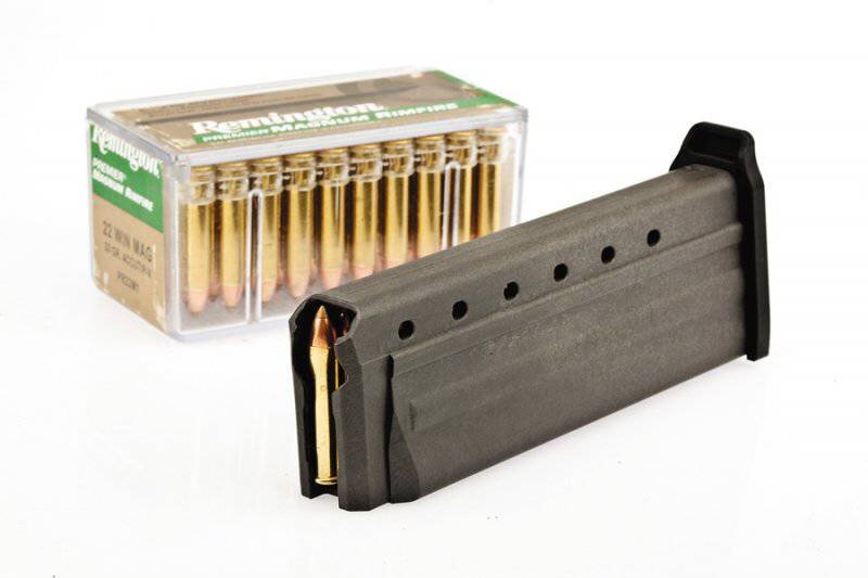 Этот представленный экземпляр сочетает в себе такой комплекс выдающихся параметров: небольшой вес, приемлемая цена, экономичность производства, передовые технологии и высокая огневая мощь. Так, к примеру, емкость его обоймы составляет 30 патронов 22 Magnum.