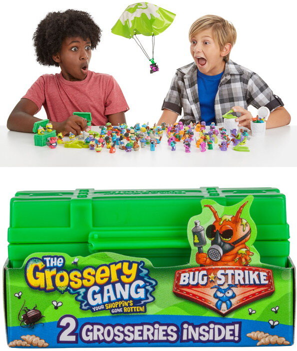 Moose Toys представила серию Grossery Gang 5, известную как Time Wars, на New York Toy Fair 2018. Также стартует серия 4, линия называется Страйк баг, и это 150 фигурок для коллекционирования. Серия Bug Strike основана на фильме, который вышел в декабре 2017 года. Grossery S4: Bug Strike В серии Grossery Gang Bug Strike каждая коллекционная фигурка будет иметь свой собственный уникальный аксессуар, свой вид оружия. Это оружие добавляет дополнительную ценность игрушечной линии. Поклонники смогут построить свои армии с новыми персонажами и оружием, чтобы защитить город от парашютных пара-гусениц, липкого спецназа и бригады жучков. В
