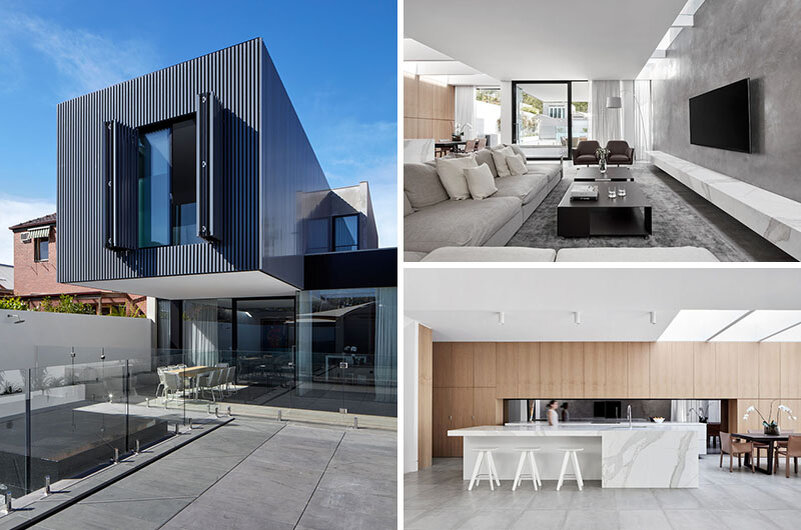 Австралийская архитектурная фирма Architecton разработала новое современное дополнение к дому наследия в Мельбурне. На фасаде дома нет даже признаков дополнения, которое расположено в задней части дома. С задней части дома расширение очень хорошо видно, это большой консольный короб, выходящий во внутренний двор. Большие складные ставни закрывают окна расширения, добавляя конфиденциальности и безопасности. Вот более детальный вид на ставни в действии. Новое расширение — это большое пространство открытого плана, равномерно поделенное между гостиной и кухней. В гостиной была использована материальная палитра из камня, бетона и металла для создания холодного современного облика. Кухня выглядит значительно светлее гостиной благодаря использованию светлого дерева и светлого камня. Рядом с кухней находится обеденная зона, которая получает много естественного света через большой потолочный просвет. В передней части дома комната была превращена в ярко-белый современный офис