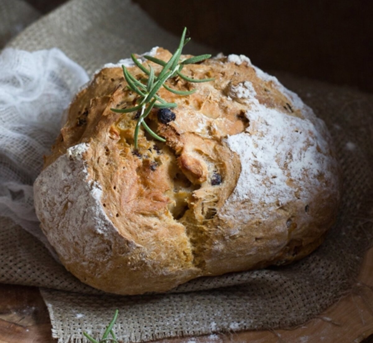 Нам понадобится: Мука пшеничная - 250 г Кефир - 1 стакан Сода - 1 ч л Корица - 1/4 ч л Соль - 1/2 ч л Изюм - 1/3 стакана Яблоко - 1 шт Начинаем готовить: Просейте муку и смешайте с содой, солью и корицей. Залейте изюм кипятком на 2-3 минуты. Затем слейте воду. Почистите яблоко и нарежьте небольшими кубиками. Начните постепенно добавлять кефир в муку и перемешивать. Затем добавьте яблоко и изюм. Замесите тесто до состояния, когда оно будет пластичным и немного липнущим к рукам. Сформируйте из теста крулгую буханочку. Смажьте противень маслом или застелите пергаментной бумагой. Поместите булочку на противень. Острым ножом надрежьте верх булочки крест-накрест. Смажьте верх остатками кефира. Выпекайте в предварительно разогретой до 200 градусов духовке примерно 40-45 минут, до румяного цвета. Приятного аппетита!