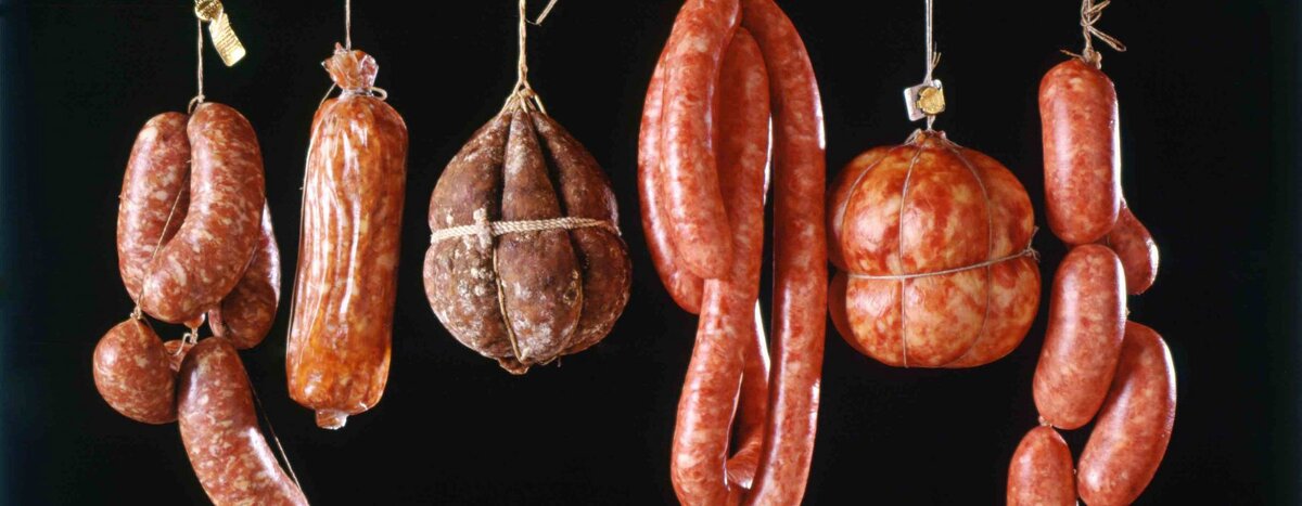 подготовленные свиные кишки (черева) Мясо дважды пропустить через мясорубку с мелкой решеткой, добавить соль, пряности и тщательно вымешать, постепенно вливая воду. Полученным фаршем наполнить тонкие свиные кишки и, перекрутив их, сделать небольшие колбаски. Коптить в течение 1 суток, затем подвесить в прохладном помещении для подвяливания на 2– 3 недели. Заходите на Колбаскидома. (http://kolbaskidoma.ru/)