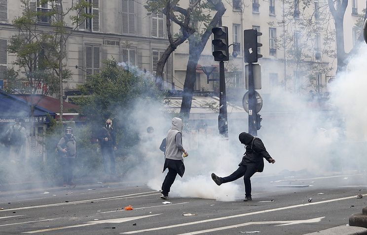 1 мая Париж. Сегодня в Париже Профсоюзная демонстрация переросла в массовые беспорядки. Больше тысячи человек одетых в черное, с масками на лицах, присоединились к мирным демонстрантам в районе моста Аустерлица и начали бить витрины, строить баррикады. Об этом сообщил во вторник телеканал BFM. Неизвестные нанесли серьезный ущерб станции обслуживания автомобилей Renault, подожгли McDonald's. Против погромщиков полиция была вынуждена применить водометы и слезоточивый газ.