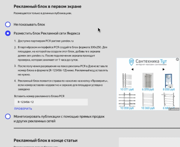 Выбор способа монетизации В разделе настроек рекламы вы можете выбрать один из двух способов размещения рекламы: «Простой заработок» и «Прямые продажи и рекламные сети». В первом случае вы получаете доход от автоматического размещения рекламы в ваших публикациях. Во втором вы вручную настраиваете рекламные блоки. Выбранный вариант заработка можно изменить в любой момент.