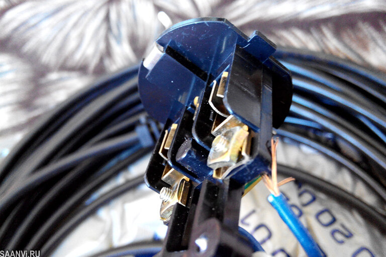 Это бракоделие изначально стоит 800 рублей (удлинитель 15-метровый). Вот так: заплатил, помучился. Хорошо, вилка удлинителя литая. Это не означает, что она не могла быть залита с браком, но ремонтировать её невозможно. Подожду, может, что и выдаст...