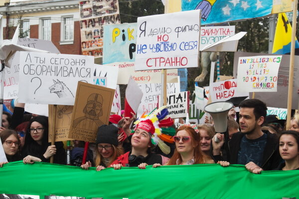 1 мая в Новосибирске прошла традиционная Монстрация. Главным лозунгом шествия в этом году стал слоган «Севернее Кореи». НДН.инфо предлагает своим читателям еще раз взглянуть на плакаты первомайского молодежного шествия, а тем, кто пропустил мероприятие. почувствовать себя участником Монстрации-2018. Фото Алексея Чистякова
