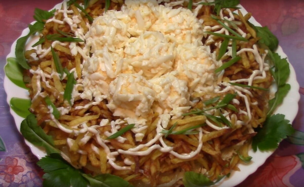 Мы делаем это каждый день. Покупаем продукты, готовим, едим. Еда, это то без чего мы не можем жить. Но если в обычные дни пища необходимость, то в праздники она становится ещё и наслаждением. А иногда даже излишеством. Мы подвергли праздничные кулинарные традиции тщательному анализу. Мы выяснили всю подноготную наших любимых праздничных блюд. Мы узнали главные секреты удачного праздничного застолья и опробовали их на себе. Мы поняли за что, так любим наши праздники. За праздничным столом, любое блюдо приобретает особый вкус. Вкус счастья, вкус надежды, проще говоря вкус жизни! И сегодня я хотел бы вам рассказать про очень красивый, нежный и к тому же очень вкусный салат под названием "Чудо в перьях" Для приготовления такого салата нам потребуются самые простые и доступные продукты! 1) Нужен будет картофель 500-600 гр. 2) Две луковицы, средних 3) Отварная куриная грудка ( можно использовать так же и любую часть курочки) 4) Яйца отвареных в крутую - 4 шт. 5) Сыр твёрдый - 100