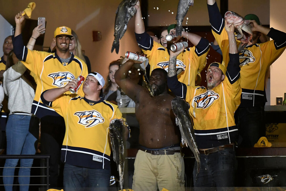 Во время второго матча полуфинальной серии Западной конференции Кубка Стэнли болельщик команды «Нэшвилл Предаторз» пил пиво, которое струёй стекало с сома. Смотрите видео Сом является неофициальным символом команды «Нэшвилл Предаторз». У болельщиков клуба в 2003 году, когда команда впервые пробилась в плей-офф Кубка Стэнли, появилась традиция бросать на лёд рыб. Болельщики «хищников» делают это по примеру фанатов «Детройта», которые в плей-офф бросают на лед осьминогов. Ранее болельщик команды своеобразно отреагировал на отменённую на последней секунде шайбу команды в игре с «Флоридой Пантерз». Ему не понравилось решение судейской бригады, и в качестве демонстрации своих чувств он отправил почтой тушки сома в штаб-квартиру НХЛ в Торонто.