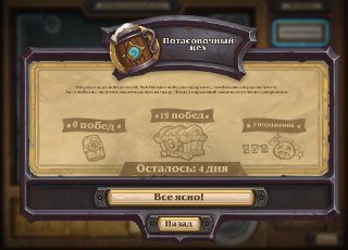 По правилам этой потасовки вы сами собираете стандартную колоду и сражаетесь в формате Арены (до 12 побед или 3 поражений), награды также выдаются как на Арене. Первый вход бесплатный, за каждый последующий придется заплатить 150 золотых! Начало в 23:00 по мск.