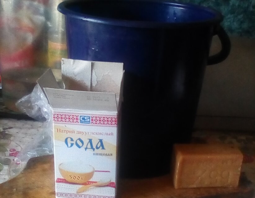 Продолжаю цикл статей про то, чем можно подкармливать, удобрять и лечить растения, не применяя особых усилий и затрат. Сегодня хочу рассказать о двууглекислом натрии, а в народе - обычной пищевой соде. Сода есть дома практически у каждого. Я, например, чищу ей посуду, не применяя химически насыщенных средств. И пачки надолго хватает, и результат не заставит себя ждать. Но для растений никогда не использовала, а пора начинать. Начнём, конечно, с профилактики, поскольку растения у меня здоровы, хочу, чтоб такими и оставались. Для приготовления полезного раствора нужны всего лишь вода, сода и хозяйственное мыло. 2 столовых ложки соды развела в 7 литрах воды (объём ведра такой). Трём мыло. Лучше, чтоб оно было подсушенным - трётся легче. У меня с советских времён сохранились бабушкины запасы старинного мыла - оно отлично подошло. Добавила 60-70 граммов измельчённого на мелкой тёрке мыла. Всё перемешала. Вода должна быть тёплой, чтобы мыло и сода растворились. Вот такое ведёрко получи