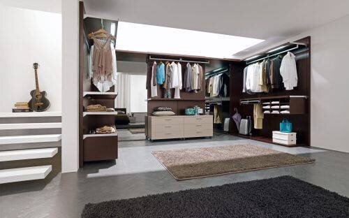 Мечта любой девушки или женщины иметь собственную гардеробную комнату, куда бы поместились все ее вещи и обувь. Помните фильм «За бортом», там, где на яхте была отдельная комната для туфель, тогда героине завидовали абсолютно все девушки земли. Пора воплощать мечты в реальность и пусть теперь завидуют вам. Самый оптимальный вариант – отдельная комната для вещей, чаще всего ее делают из кладовки, лишь недавно проектировщики стали предусматривать дополнительные помещения. Для тех, кто мучается, как лучше разместить свои вещи: различные гардеробные комнаты и лучшие дизайн проекты собраны в одной подборке прямо для вас. Рассмотрим основные типы планировки гардеробной комнаты: 1. Угловая гардеробная. Возникает такая модель при отсутствии отдельного пространства для складирования вещей. Ненужный угол закрывается либо шторкой, либо дверями – купе, а внутри оборудуются полочки или вообще гардеробной может служить открытое пространство. 2. П-образная гардеробная. Вариант для вытя