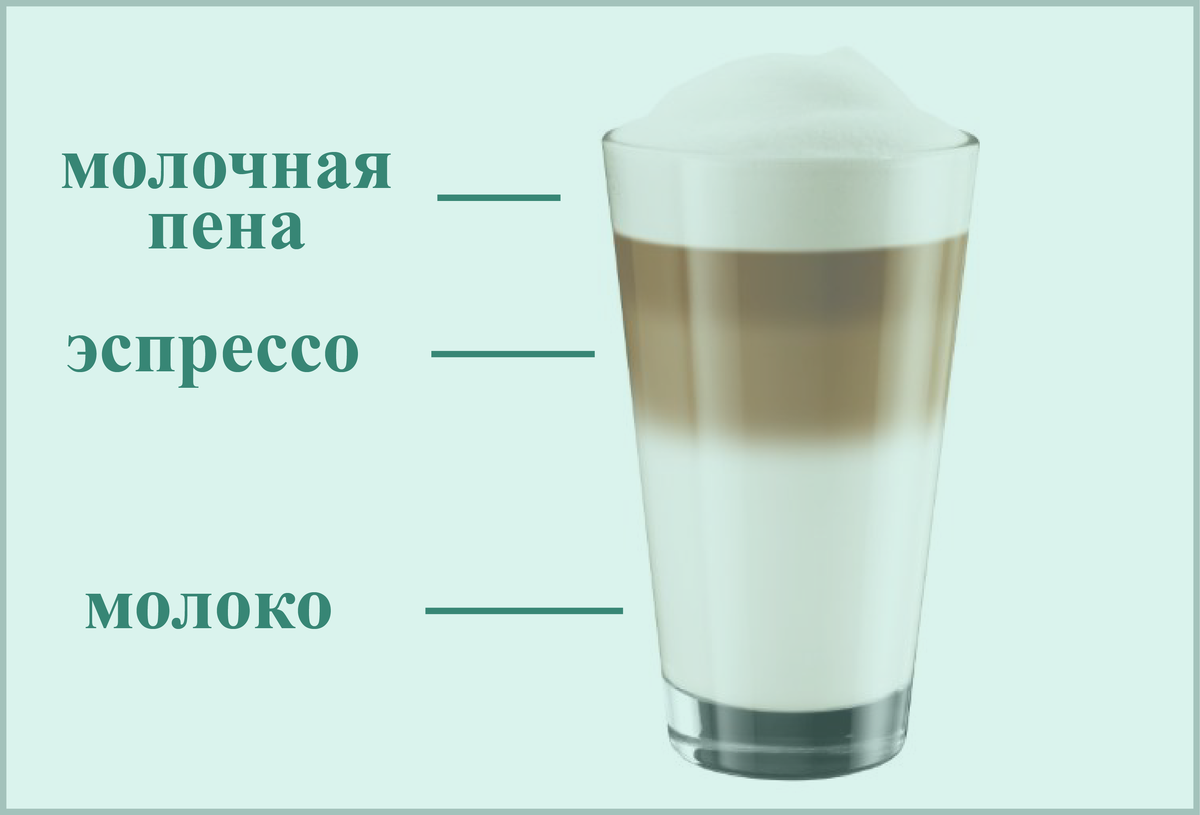 (1 минута на средней мощности), либо в кастрюле на огне. При этом молоко не должно закипеть, только нагреться. Разогретое молоко нужно тщательно взбить до появления молочной пенки. Для этого подойдут миксер, блендер или ручной пеновзбиватель. При отсутствии всего перечисленного можно взять венчик и взбить молоко вручную (2-3 минуты). Все компоненты готовы, осталось перелить их в стакан. В идеале используется длинный стакан с зауженный низом. Классическое латте макиато предполагает содержание равного количества молока, эспрессо и молочной пенки. Орие