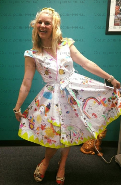 Учитель – чрезвычайно важная профессия. Каждый день учитель должен быть примером для своих учеников, а также уметь убедить ребенка внимательно слушать и спокойно сидеть! Мэри Расберри полностью владеет этими качествами! Она разрешила сделать своим ученикам сделать то, что навсегда останется в их памяти. Миссис Расберри – учительница начальных классов, фея, исполняющая желания! Она сделала всё возможное, чтобы её ученики ещё раз испытали радость и восторг! Она надела белое платье и позволила детям разрисовать его согласно их пожеланиям! Ученики со всей ответственностью отнеслись к заданию и создали на платье своего учителя настоящее произведение искусства! Учительница обещала, что наденет это произведение искусства на выпускной вечер своего класса! Она дала своему платью имя – "Кабинет 19". Это просто шедевр, вы не находите?