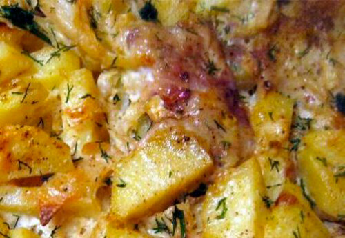 Очень вкусный получится ужин для всей семьи если запечь рыбку с картофелем в духовке. Этот рецепт горячего можно приготовить и на праздничный стол если охота разнообразить чем то новеньким. Ингредиенты: 2шт мороженной скумбрии 1кг. картофеля 2шт репчетого лука 2шт. моркови 150г. сыра Майонез Соль, перец по вкусу Способ приготовления: Берем нашу скумбрию моем ее чистим. Отделяем филе от косточек. Режим наше получившееся филе на кусочки. Очищаем лук и режем его полукольцами. Трем морковь на крупной терке. В глубокое блюдо ложем рыбу, лук и морковь все это солим, перчим и даем немного постоять. Очищаем картофель и режим тонкими кольцами. К рыбе добавляем майонез и все перемешиваем. Картофель перемешиваем с майонезом и немного солим. В противень выкладываем рыбу и сверху картофель. Картофель засыпаем сыром. Все отправляем в духовку и запекаем при температуре 185 градусов около часа. Все наша рыбка с картофелем готова можно кушать. Также вы можете посмотреть еще интересные и вкусные ре