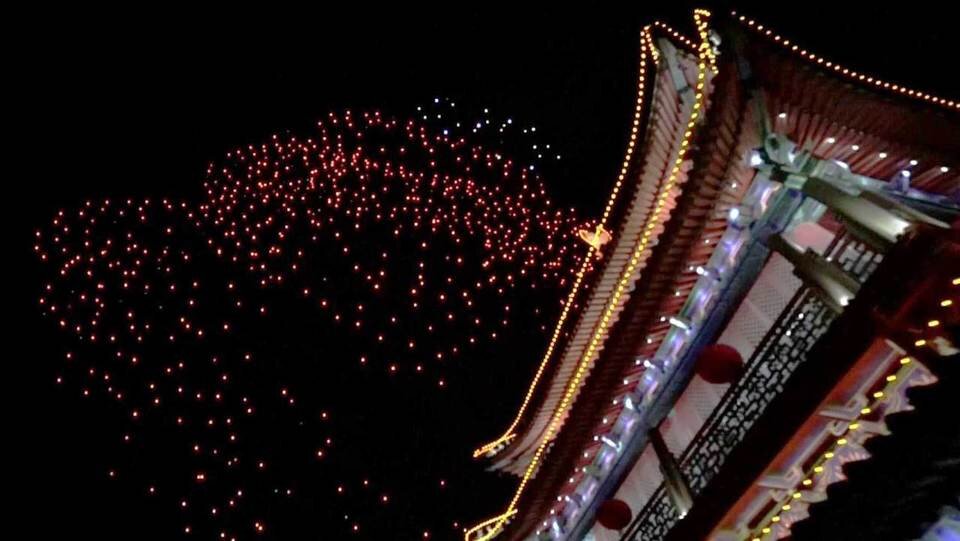 Сиань никак не мог уступить титул самого масштабного светового шоу с наибольшим числом дронов. Напомним, что в прошлом году город уже покорил книгу рекордов Гиннесса с представлением в 1000 летательных аппаратов. Но титул перехватила компания Intel, во время зимних Олимпийских игр в Пхёнчхане в феврале этого года. Тогда в воздухе одновременно находилось 1218 дронов. Оставить без ответа это было невозможно и вот уже 1374 беспилотника поднялись одновременно в воздух, чтобы установить новый рекорд и порадовать зрителей Сианя. На радость математикам немного цифр из шоу: общая длина панорамы более 1,2 км, ширина около 100м. За время представления дроны построили 16 фигур и узоров, среди которых схематичные изображения Сианьской городской стены и Великого шелкового пути, а также число "1374", символизирующее число беспилотников в представлении и протяженность городской стены Сианя 13,74км. Заветная цель опять достигнута! Смотрим: Ну и для сравнения, предыдущий рекордсмен:
