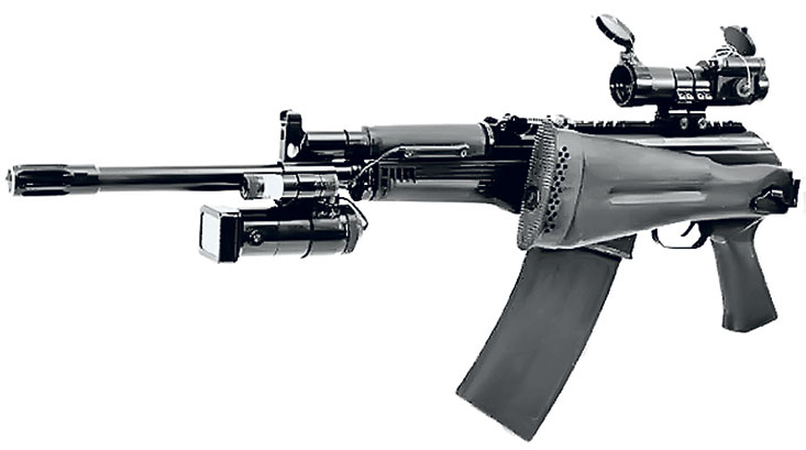 При разработке боевого гладкоствольного оружия по заказу МВД отечественными оружейниками, естественно, использовался богатейший опыт создания и производства коммерческих ружей. В частности, Ижевский машиностроительный завод в 90-е годы на основе системы автомата Калашникова разработал и выпустил на рынок серию нарезных и гладкоствольных самозарядных карабинов под общим названием «Сайга». Коммерческие гладкоствольные карабины 12-го калибра семейства «Сайга-12» стали наиболее популярны, нашли широкий спрос в России и за рубежом. «Сайга-12К» со складывающимся прикладом и пистолетной рукояткой используется и правоохранительными структурами, и многими сборными командами на соревнованиях по практической стрельбе. Оружие в общих чертах сохраняет базовую схему. Конструкция и размеры газоотводного узла, затворной рамы и узла запирания изменены в соответствии с особенностями ружейного патрона. Возвратный механизм несет подвижный щиток, перекрывающий паз для прохода рукоятки заряжания при вык