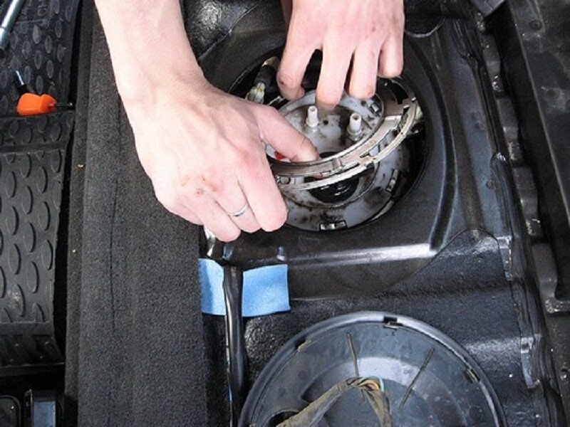 Топливный насос в автомобиле подает топливо из бака в двигатель.Некоторые из старых моделей двигателей вообще обходились без них используя силу гравитации для достижения этой цели, в то время как более поздних моделях механические насосы находятся вне топливного бака. У большинства же современных двигателей топливный насос с электрическим приводом расположен в топливном баке. Некоторые транспортные средства могут иметь дополнительный топливный насос, расположенный рядом с двигателем. Уберите давление В трубках топливного насоса всегда будет находится высокое давлением, даже если двигатель выключен. Одной из первых вещей, которые нужно сделать перед заменой топливного насоса, является уменьшение давления в системе. Посмотрите, что уровень топлива в баке мал, желательно, что бы было меньше одной восьмой от его емкости. Выньте предохранитель топливного насоса из монтажного блока. Запустите машину и ждите, пока она не заглохнет. Продолжайте делать это, пока автомобиль перестанет запускат