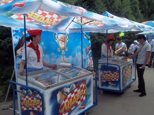 Заграницей этот способ практикуется уже давно. В нашей стране продажа мороженого на колесах еще не распространена. Большой плюс данного метода – мобильность. Предпринимателю не потребуется искать подходящее место для продажи товара, он сможет перемещаться по городу и останавливаться в оживленных районах, где много потенциальных клиентов.
