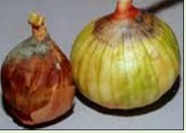 Из названия этого грибкового заболевания понятно, что оно поражает луковичные растения: прежде всего лук-репку и лук-севок. Особенно заметно наличие заболевания в процессе хранения плодов урожая: в верхней части луковой головки появляются размягчения и провалы, а при разрезе ее мякоть похожа на испеченную. Нередко под кожурой луковицы образуется серый «пушок», содержащий конидий. Заражение этим видом гнили происходит изначально от посевного материала и остатков переболевших растений, не убранных после сбора урожая с грядок. Грибок быстрее распространяется в прохладную погоду с повышенной влажностью. Для борьбы с шейковой гнилью используют способ посадки лука в ранние сроки в удобренную азотом почву, а калийные добавки вносят уже во второй половине вегетационного периода. В период формирования и роста луковиц растение подкармливают средством «Барьер» (5 стол. ложек на ведро воды) из расчета 2 литра раствора на квадратный метр посадок. Сбор урожая производят после полного высыхания назе