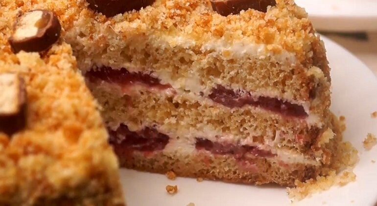 Торт со сгущенным молоком можно приготовить всего за несколько минут, из минимального набора продуктов. Результат же потрясающий: нежный и мягкий бисквит буквально тает во рту. Ароматная и соблазнительно аппетитная начинка настолько вкусная, что сводит с ума. Крем из сметаны и сахарной пудры органично вписывается в общий ансамбль ингредиентов, превращая выпечку в настоящий кулинарный шедевр. Такой тортик и на праздничный стол подать не стыдно: он красивый, очень вкусный и ароматный. Необходимые ингредиенты: Для ягодной начинки: Для крема: Мгновенный торт со сгущенным молоком: пошаговый процесс приготовления Разрезаем десерт на порционные кусочки и подаем на стол: с чашкой ароматного чая или кофе. Тортик очень вкусный, один из любимых в моей семье: готовлю его довольно часто. Исчезает со стола моментально: делайте сразу двойную порцию. Еще больше простых рецептов изумительной выпечки смотрите на нашем сайте «Девчата»: и готовьте с удовольствием. Приятного всем аппетита.